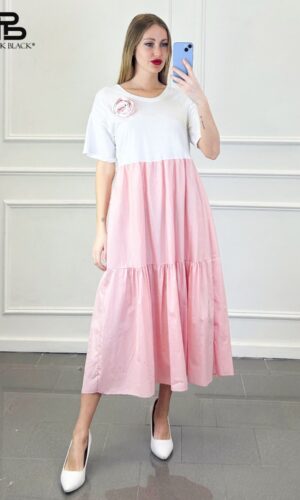 Rochie din bumbac cu accesorii, roz