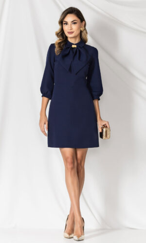 Rochie mini cu guler clasic și jabou cu anou auriu