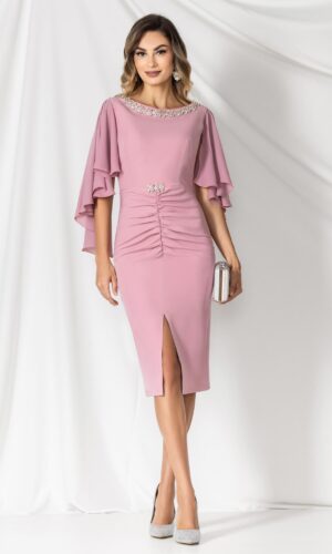 Rochie roz clos cu floare pe umar pe maneca