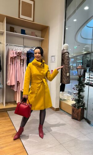 Rochie în cloș cu decolteu în V și mânecă lungă