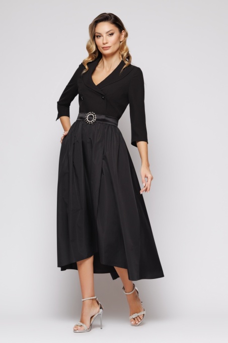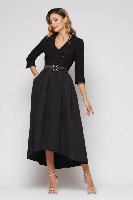 Aceasta este o rochie eleganta de culoare neagra, cu un disign sofisticat si feminin.